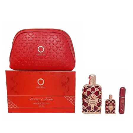 - Discover the enchanting allure of Orienticas Amber Rouge, a captivating fragrance launched in 2021 that has quickly become a favorite among ladies. This exquisite scent belongs to the Woody Spicy fragrance family, making it perfect for those who appreciate a blend of warmth and mystery. The Amber Rouge Gift Set is an ideal choice for gifting or indulging yourself with a luxurious scent experience. The journey begins with the top notes of saffron and jasmine, which create an immediate sense of sophistication and elegance. As the scent evolves, the heart notes of amberwood and ambergris emerge, adding a rich and opulent depth. Finally, the base notes of cedar and fir resin provide a lasting impression that is both grounding and enchanting.
