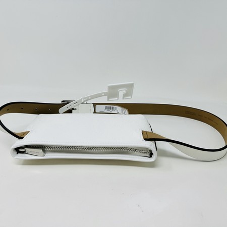 • This versatile shoulder bag is perfect for any occasion, whether you're traveling, running errands, or going out for a night on the town. The exterior is made of high-quality leather in a sleek white color, accented with a basket weave pattern and the iconic MK logo.