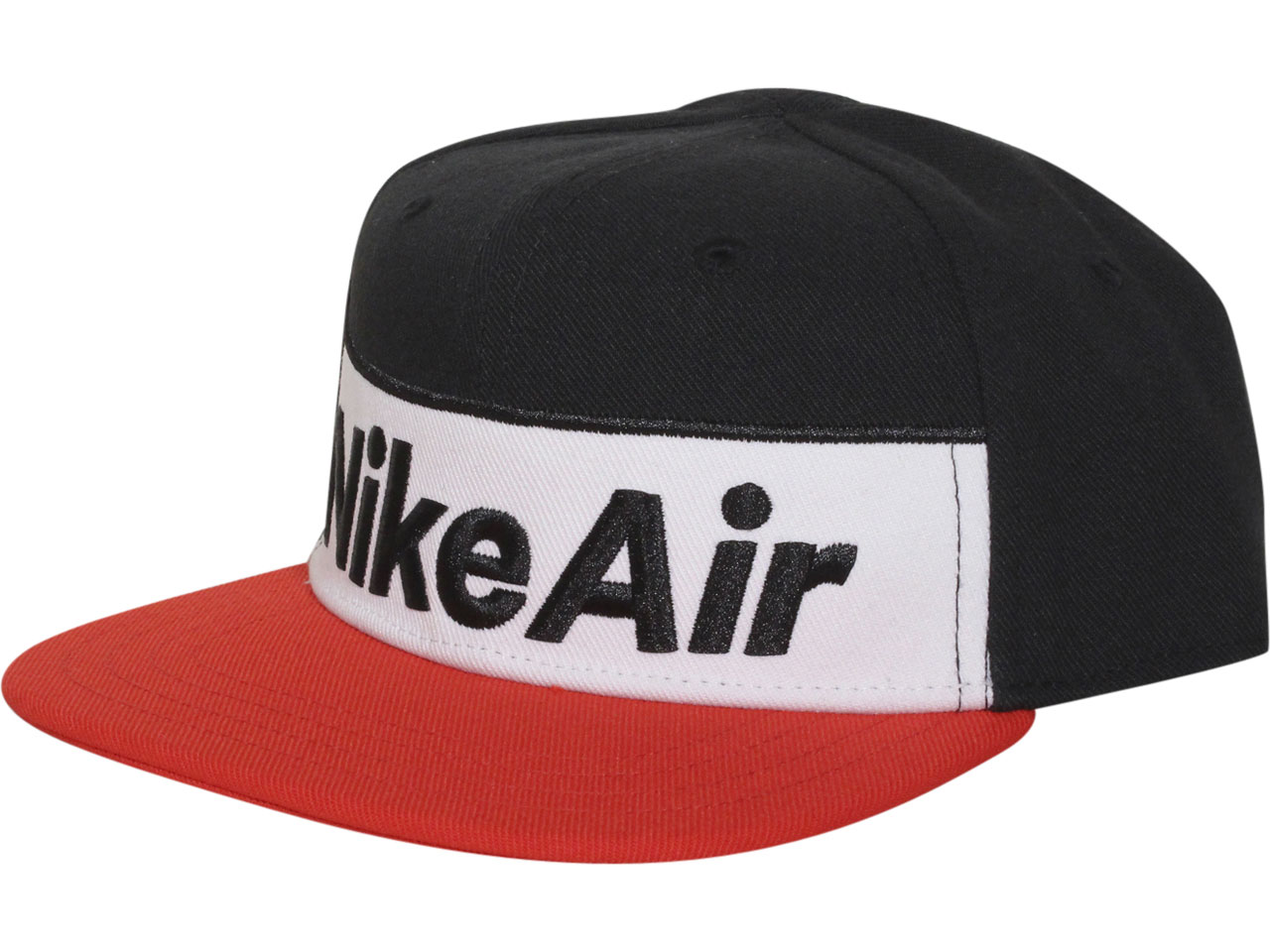 - Reinforced Flat Brim. Nike Air Logo At Front. Adjustable Snap At Back. Check-Out Now! Top of page. Made In: Vietnam.