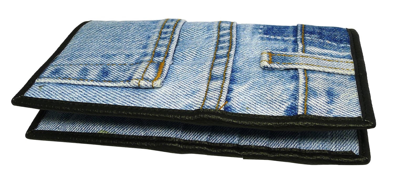 Denim Patchwork Wallet for Womens PU Leather Zip Around Wallers Clutch Wristlet Travel Long Purse