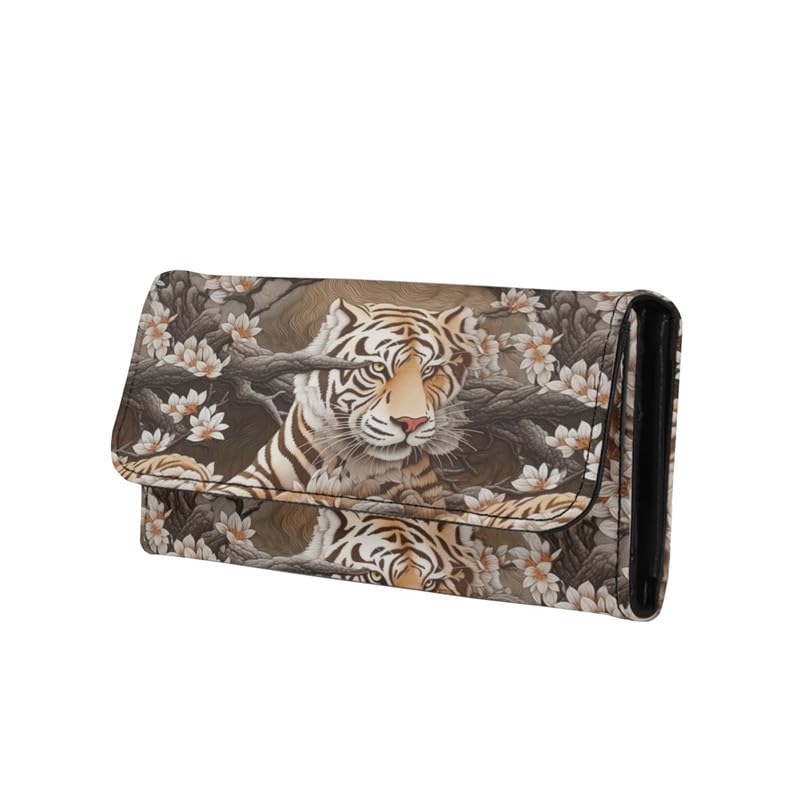 Tiger Pattern Wallet for Womens PU Leather Zip Around Wallers Clutch Wristlet Travel Long Purse