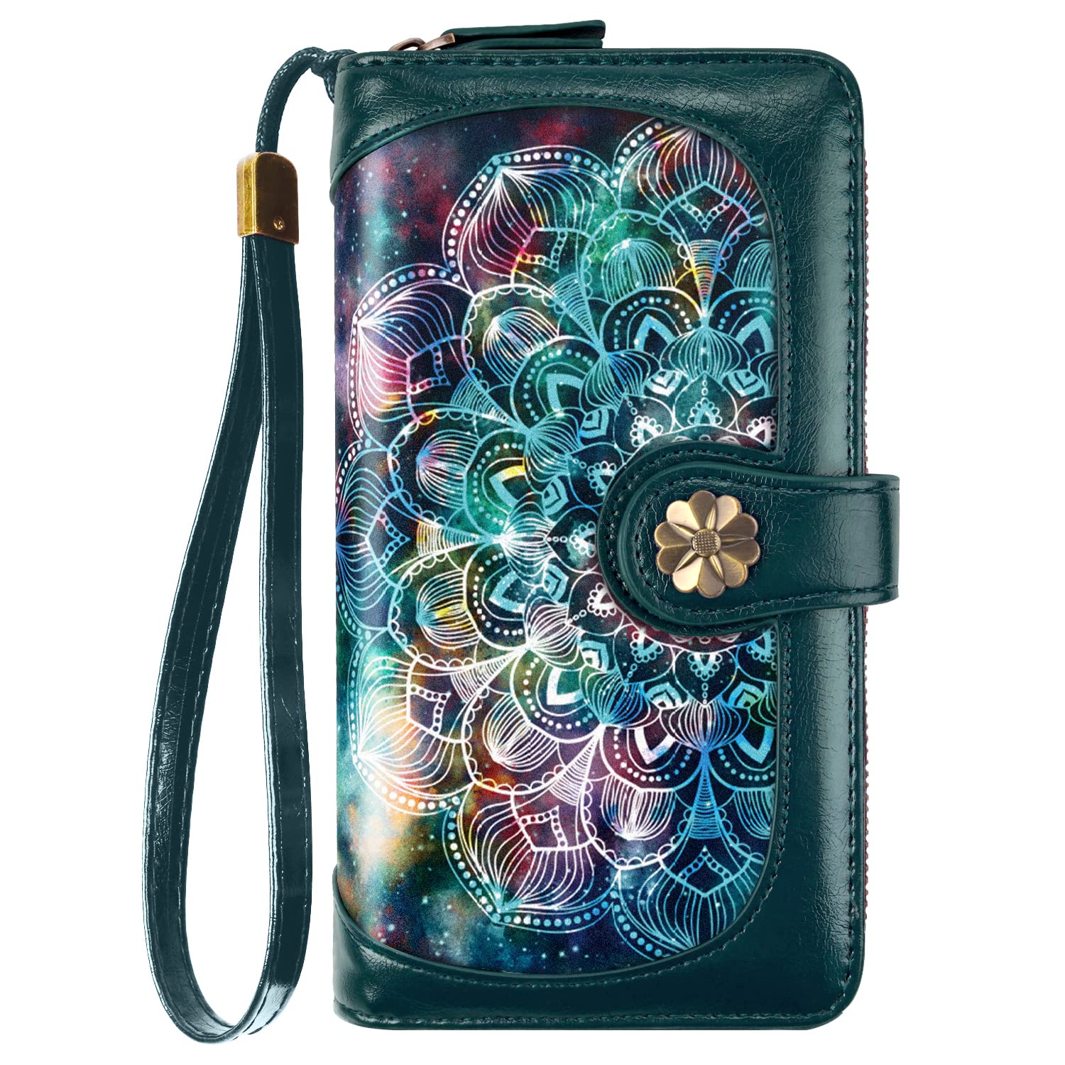 Mandala Purple Wallet for Womens PU Leather Zip Around Wallers Clutch Wristlet Travel Long Purse