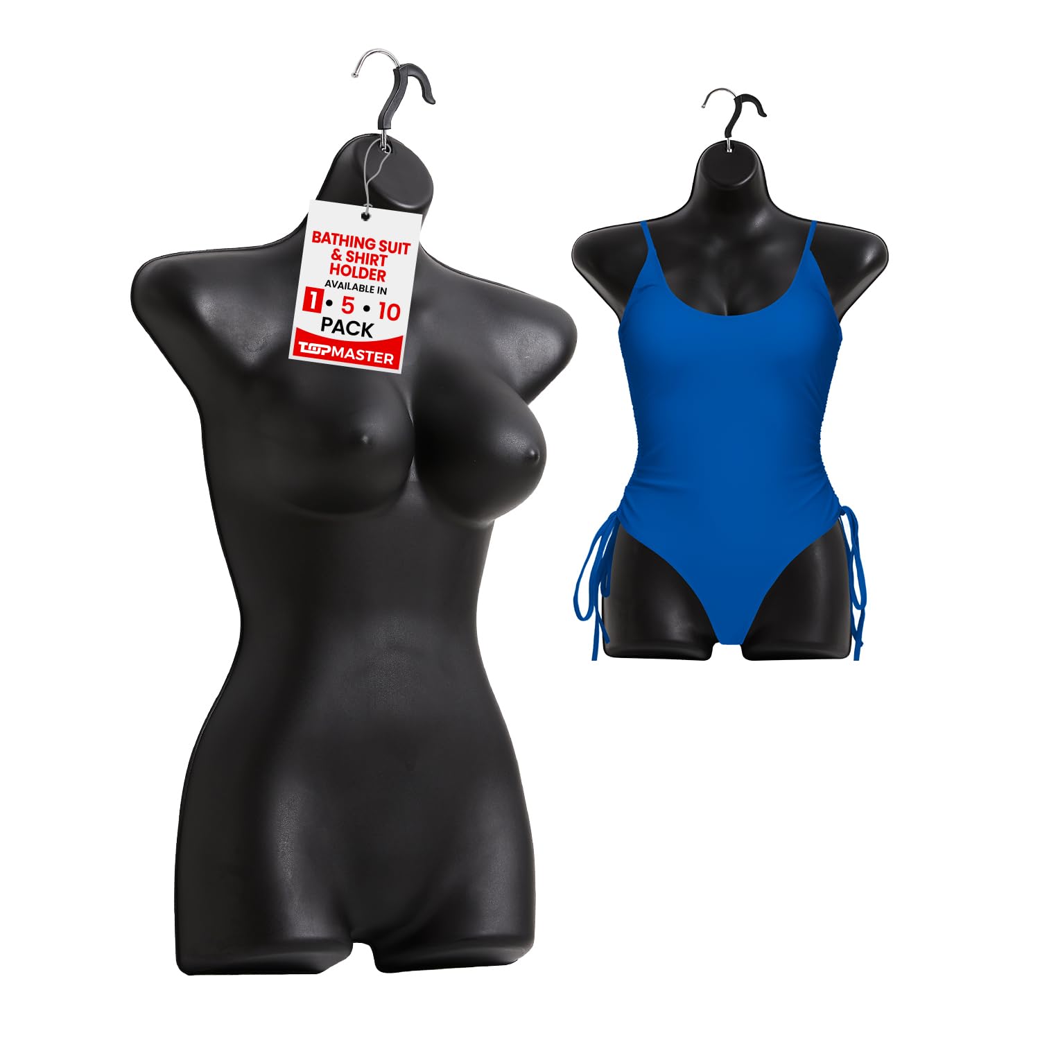 Female Bathing Suit Holder - Durable Female Mannequin Torso, Lightweight and Portable Half Body Shirt Holder with Hanging Hook, Female Mannequin for Shirt and Swimwear, Black, Pack of 5