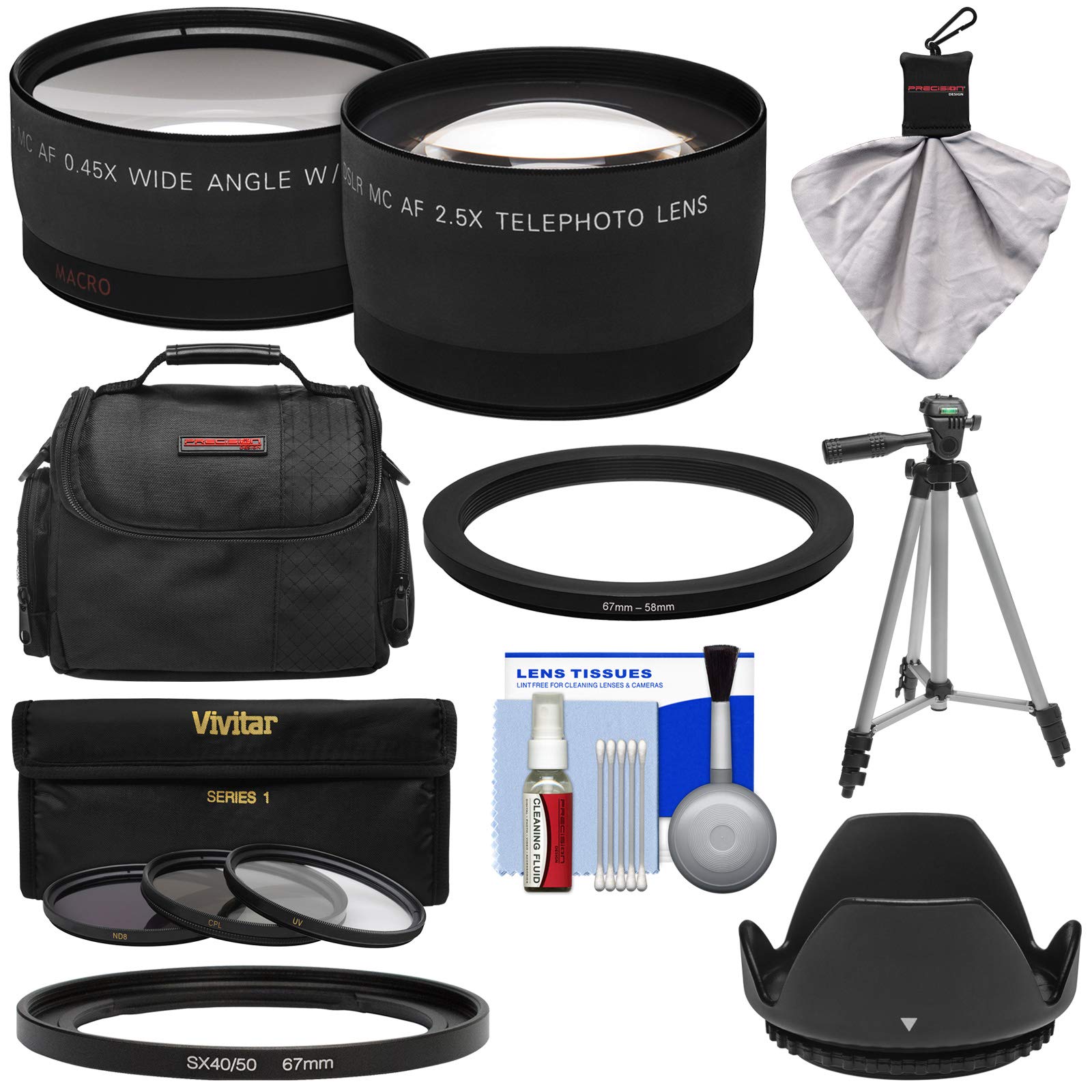 49mm 2X Telephoto Lens Attachment + 49mm HD UV CPL FLD Filter Set + 49-58mm Step Up Ring HF4958 to Attach 58mm Filters to 49mm Thread Lenses + 49mm HD Multi-Coated Wide Angle Lens Attachment + Backpack + Grip Strap + Lens Hood + Cleaning Kit + Lens Holder