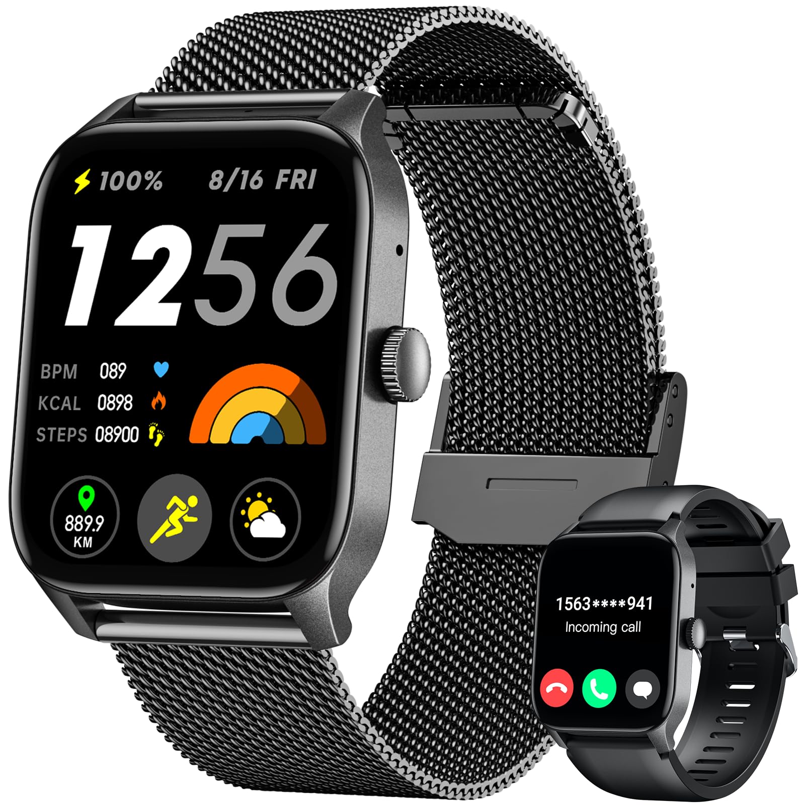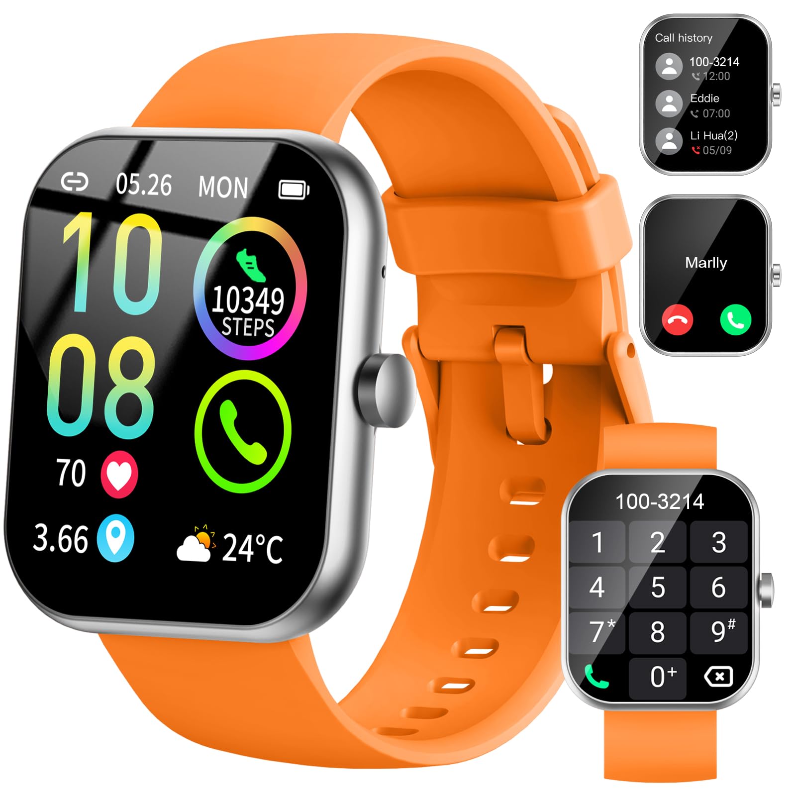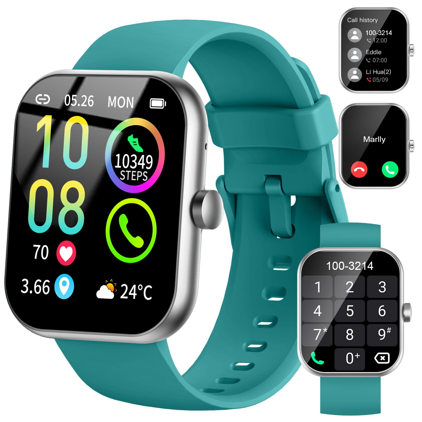 - Features:Designed for sports: The ultra-narrow bezel design, aluminum navigation crown, and large 2.03-inch high-clear color display of this smartwatch are all designed to meet the needs of sports enthusiasts.Show your personality: The ultra-thin and lightweight body and more than 100 fashionable dials allow you to change at any time according to your preferences and occasions, showing your style.Exercise assistant: More than 100 professional exercise modes, including running, walking, cycling, outdoor exercise, indoor sports, etc., help you better achieve your exercise goals.Practical functions: Bluetooth phone, a variety of practical functions, make your daily life more relaxed and comfortable.Long battery life: After the battery is fully charged, it can be used for up to 15 days. The new battery protection mode allows you to not worry about battery issues.Widely applicable: Whether you are a sports enthusiast, a fashionable urbanite, or a busy office worker, this smartwatch can meet your needs.Specification:Optional color:Material: Plastic+ Aluminum Navigation Crown+ Fluoroelastomer strapWater: IP68 Display Size: Ultra-large 2.03'' HD Color Display Display Resolution: 260 PPI, 240*296 pixels BT: BLE 5.2 Battery Capacity: 280mAh Li-pol battery. Battery Life: Typical usage modes Up to 15 days; Heavy usage modes Up to 7 days; Continuous Voice Calling Up to 280minsCharging Time: ~1.5 hours APP Name: Da Fit Smartphone Compatibility: Android 5.0 or iOS 9.0 and above. System: English, Portuguese, German, French, Spanish, Russian, Italian, Japanese, Ukrainian, Arabic, Turkish, Korean, Simplified Chinese. Da Fit APP: English, Portuguese, Russian, Spanish, Japanese, Korean, Arabic, Bulgarian, Czech, Danish, German, Finnish, French, Hindi, Croatian, Indonesian, Italian, Norwegian, Dutch, Polish, Pashto, Romanian, Swedish, Thai, Turkish,Ukrainian, Vietnamese, Simplified Chinese, Traditional Chinese. Message Push: English, Portuguese, Russian, Spanish, Japanese, Korean, Arabic, Bulgarian, Czech, Danish, German, Finnish, French, Hindi, Croatian, Indonesian, Italian, Norwegian, Dutch, Polish, Pashto, Romanian, Swedish, Thai, Turkish,Ukrainian, Vietnamese, Simplified Chinese, Traditional ChineseAPP Sync: 100+Wrist Circumference: 145-200 mm Operating Temperature: From-20℃ to 40℃ (Temperatures below-20℃ may affect battery life and performance)Dial size: 48.5 x 39.5 x 10.9 mm Weight: 38.6 g with wristband, 22.5 g without wristband. Package Size: 154 x 85 x 22 mm Package weight: 89g Package list:1* Smart Watch1* Charging Cradle1* User Manual