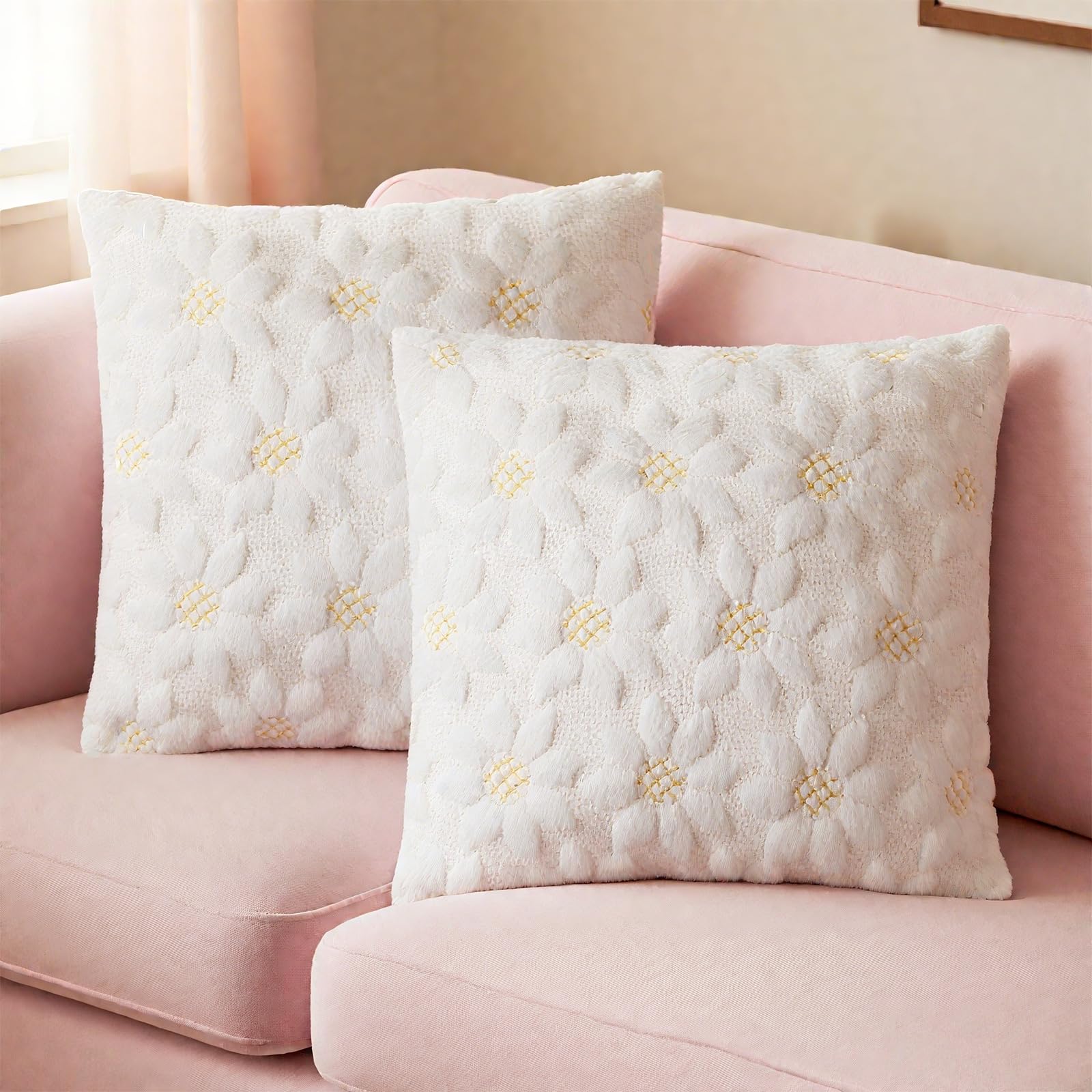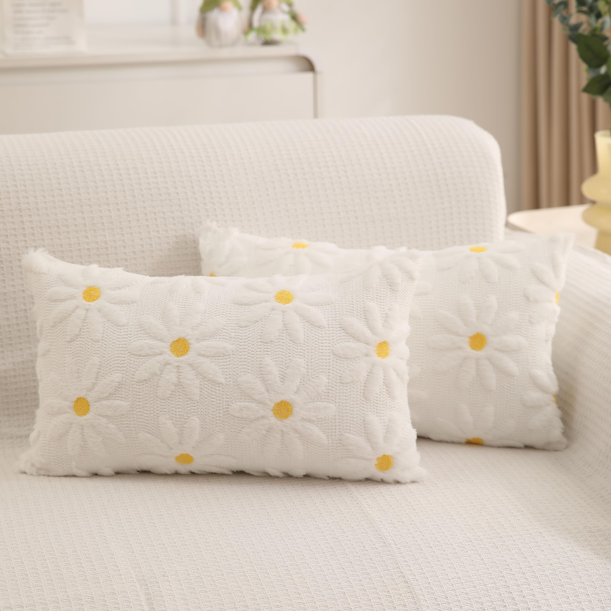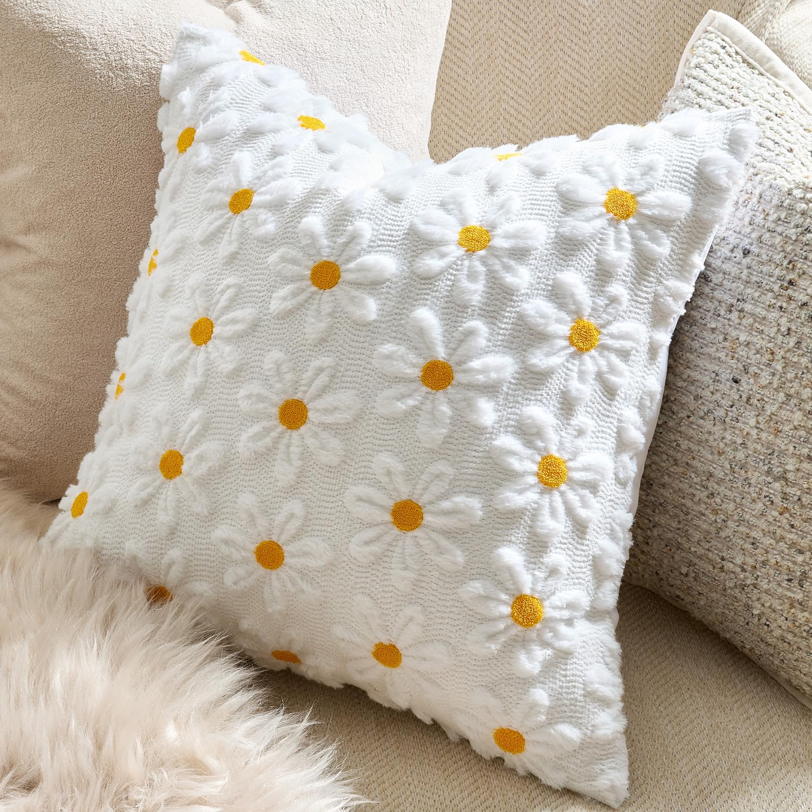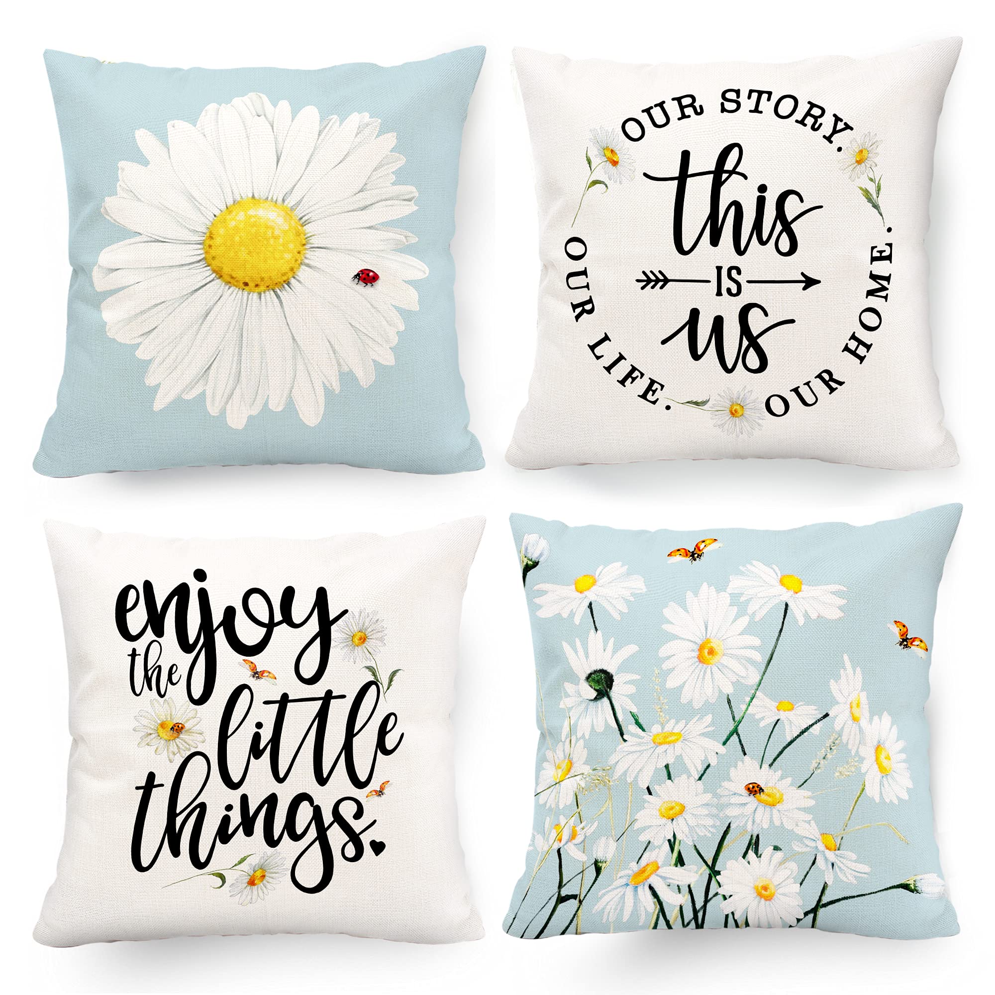 Daisy Throw Pillow Covers Yellow Décor Cushion Case - Set of 4
