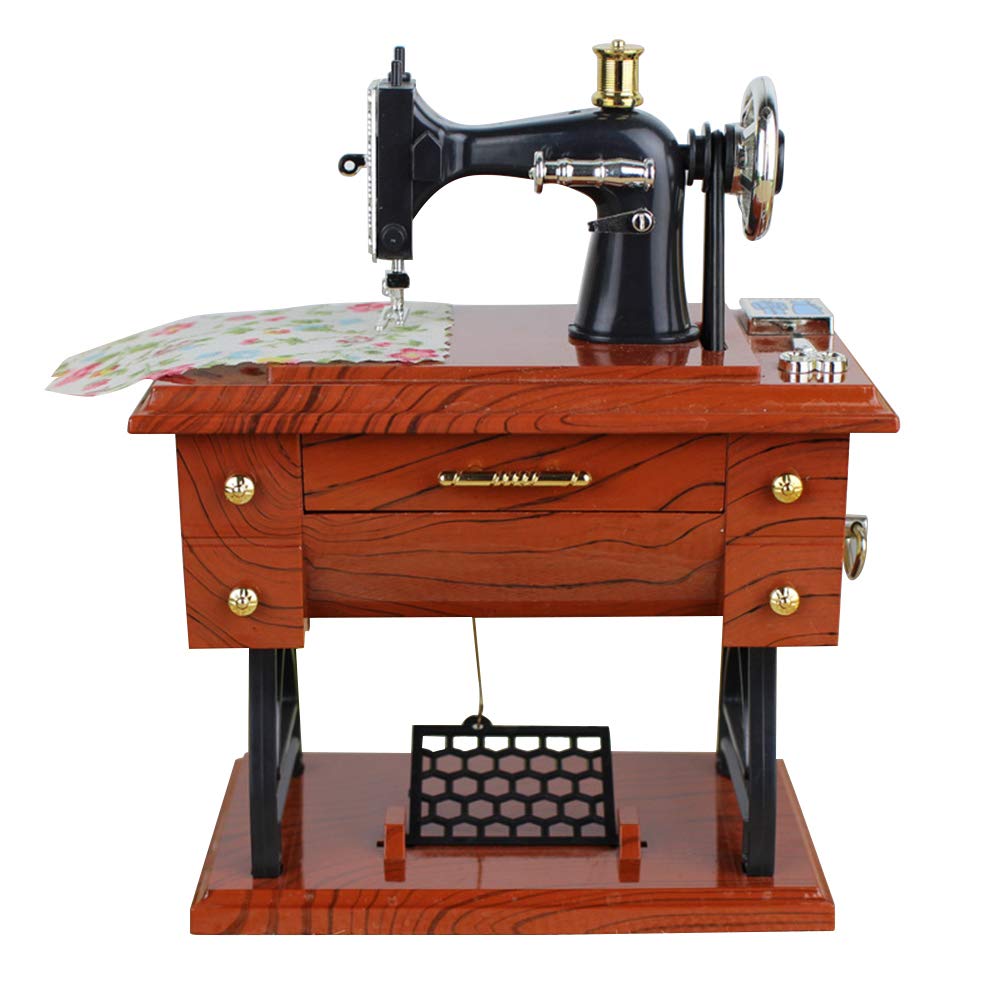 Vintage Mini Sewing Machine Music Box, European Retro Classical Treadle Sewing Machine Table Desk Mechanical Clockwork Music Box for Home Decor Birthday Gift