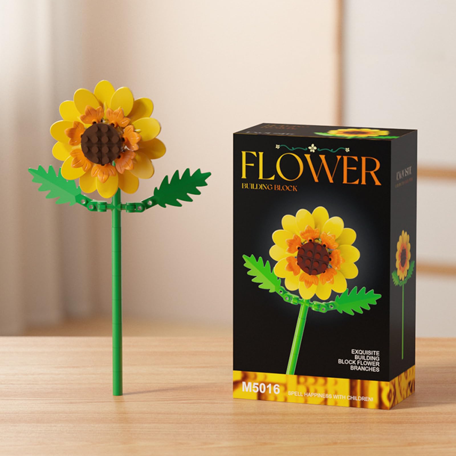 Flower World Block Toys with Dust Cover, Flower Bee Block Set, Home Decor Gifts, Botanical Series, Mother's Day Christmas Gift for Daughter