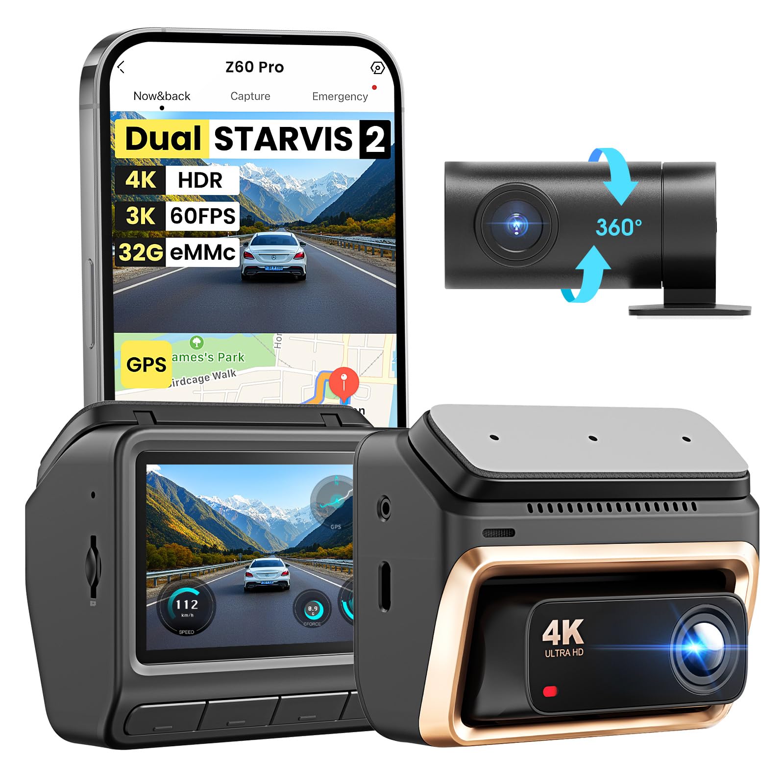 - DDPAI Dash Cam MINI Pro 4K Ultra HD: Provides 4K ultra HD, clearly records driving details, and restores the real scene. 160° Ultra-wide viewing angle: Covers a wider field of view, reduces blind spots, and allows you to always control the surrounding road conditions. STARVIS back-illuminated sensor: Clearly records even at night to ensure driving safety. ADAS Intelligent Assistance: Provides lane departure warning, front vehicle collision warning and other functions to improve driving safety. Built-in GPS: Records driving trajectory and speed to provide strong evidence for accidents. Parking monitoring: When the vehicle is turned off, it automatically enters parking monitoring mode to ensure the safety of your car. Mobile phone interconnection: Connect your phone via Wi-Fi to view monitoring images and playback videos in real time.