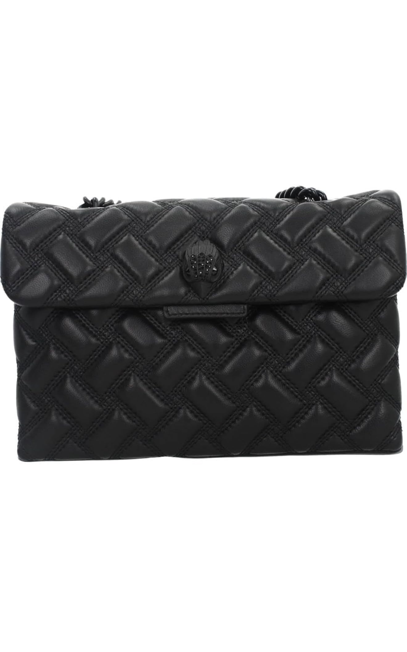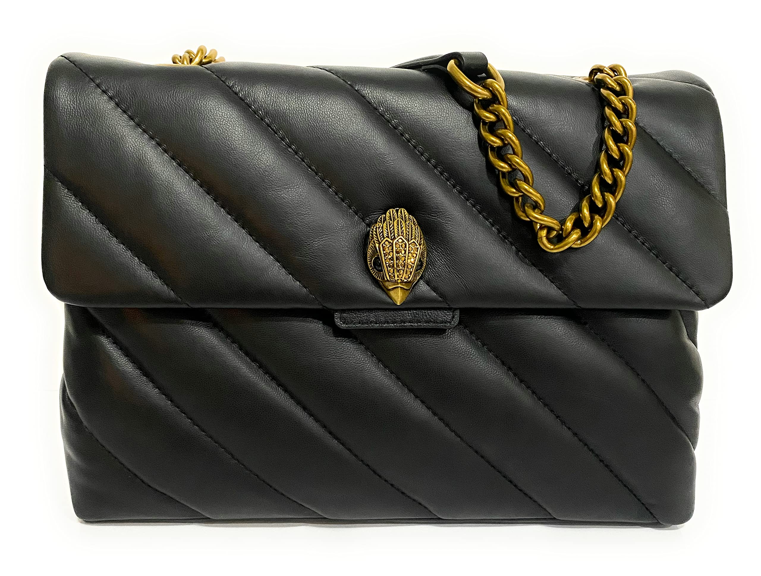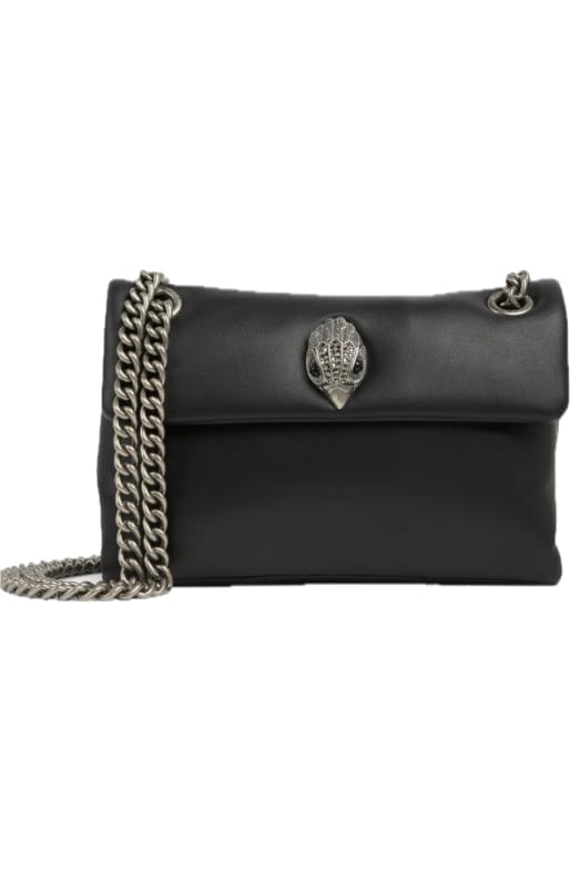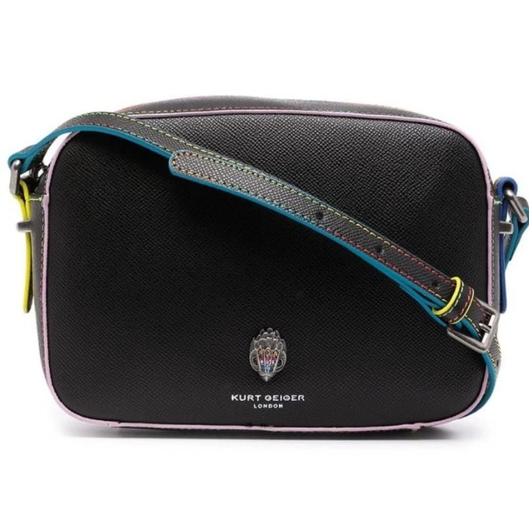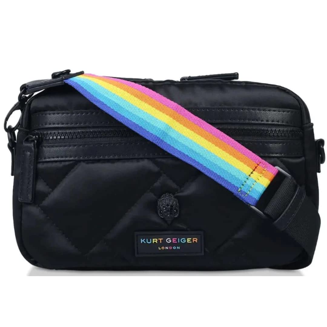 - The Kensington Bag is crafted from a metallic laminated pebble grain cow leather in the iconic diagonal rainbow sewn stripe pattern. The antiqued silver Eagle head features rainbow coloured crystals and black bead eyes on the front flap. 18cm (H), 18cm (L), 6.5cm (D) Antiqued silver chain strap Duo magnetic snap closure hidden under flap Silver foil embossed logo on the back Small internal lining pocket Outer: Pebble grain cow leather Interior: Monogrammed interior lining