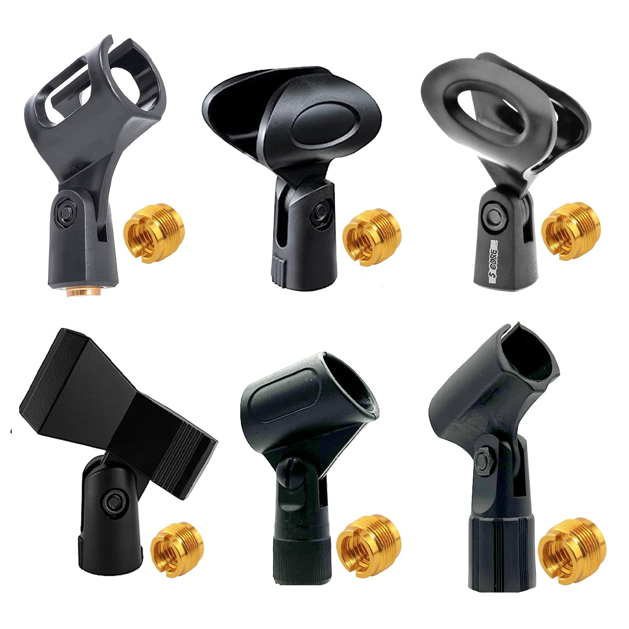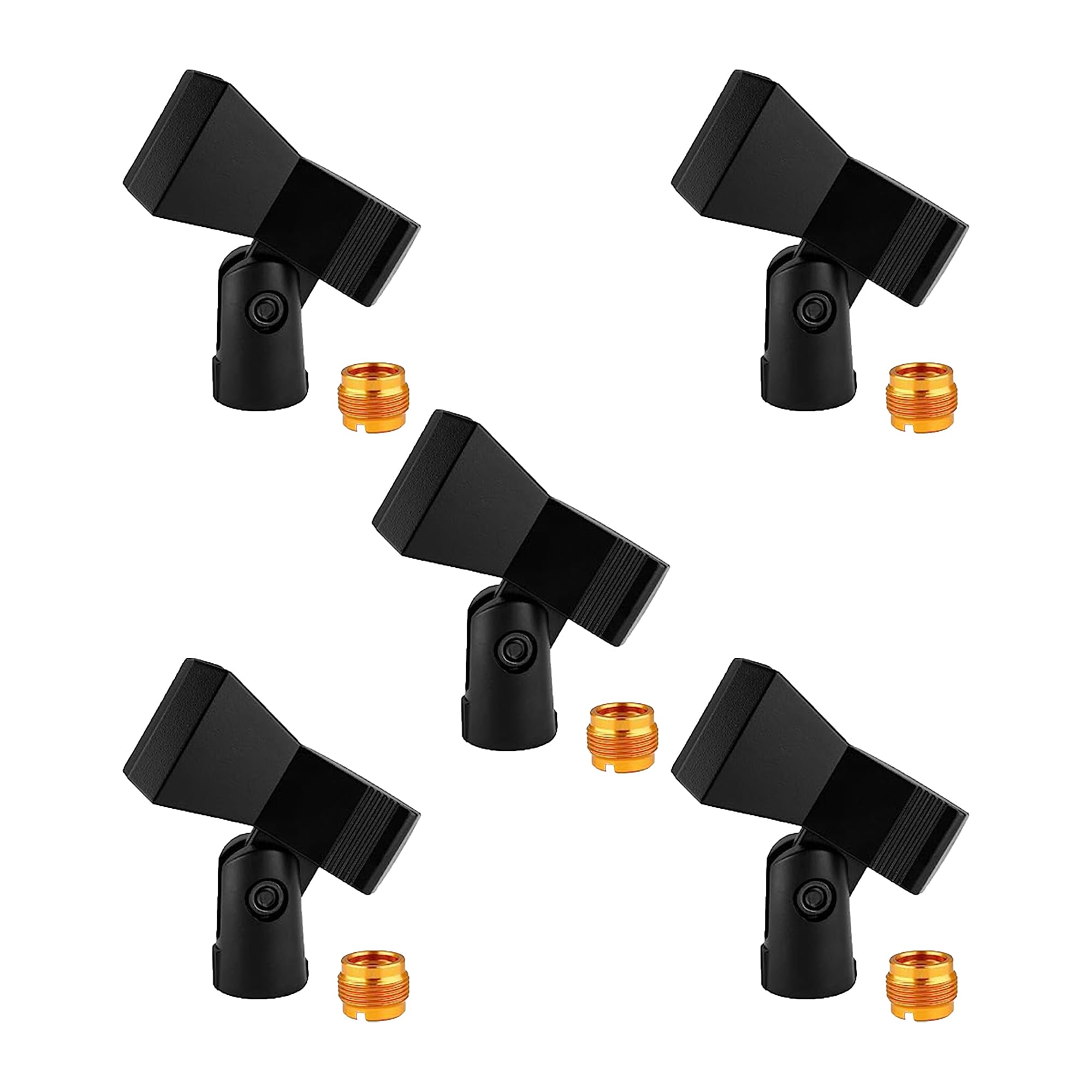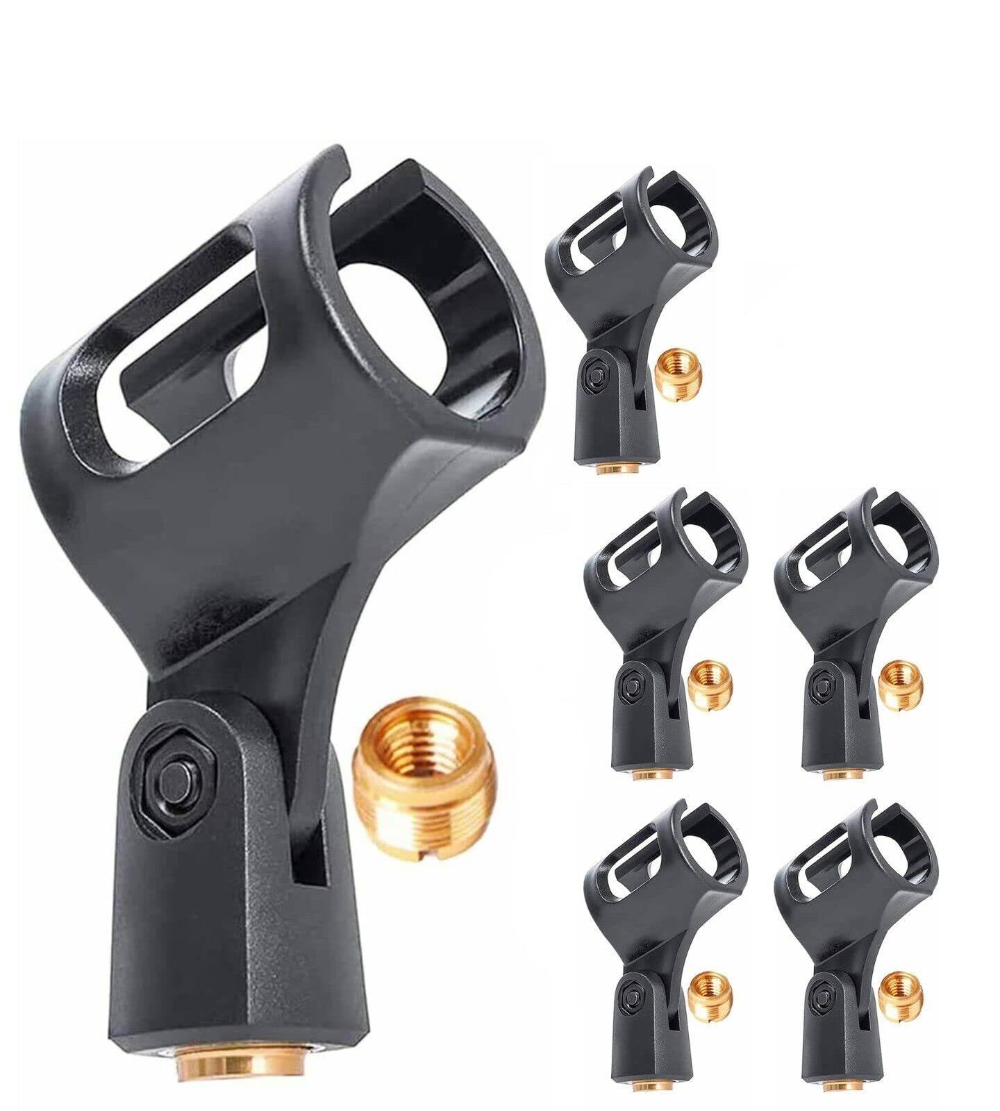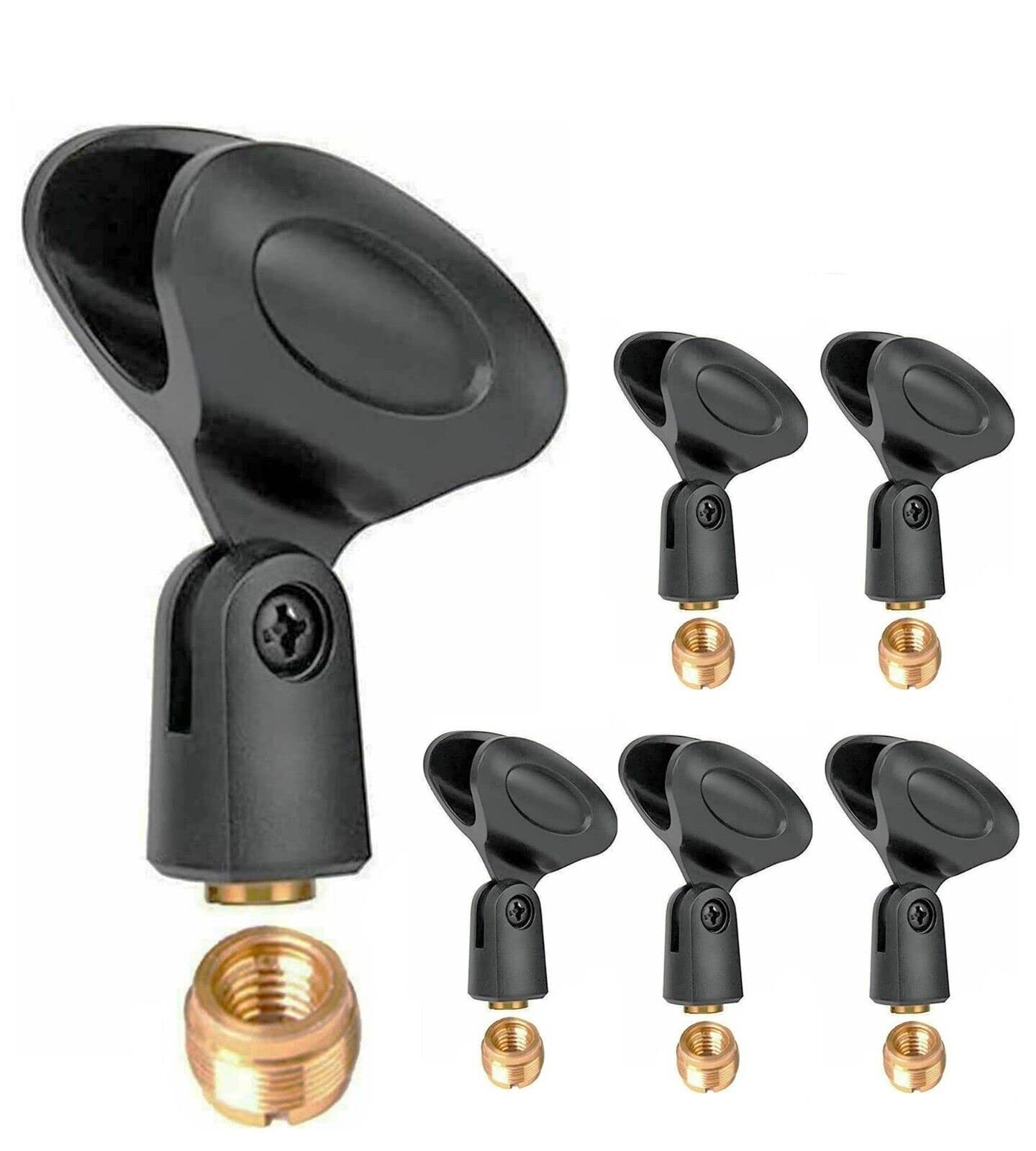 - Elevate your microphone setup with our versatile microphone clips. Universally compatible with dynamic vocal microphones, these clips offer flexibility and durability. Included 5/8” male to 3/8” female adapters are made of durable metal, ensuring a secure fit. The ABS plastic construction combines durability and flexibility, allowing for easy microphone adjustments. Upgrade your recording experience with these dependable, adaptable microphone clips. At 5 Core, Customer satisfaction is our priority—a proven track record of delivering the highest quality product since 1984.
