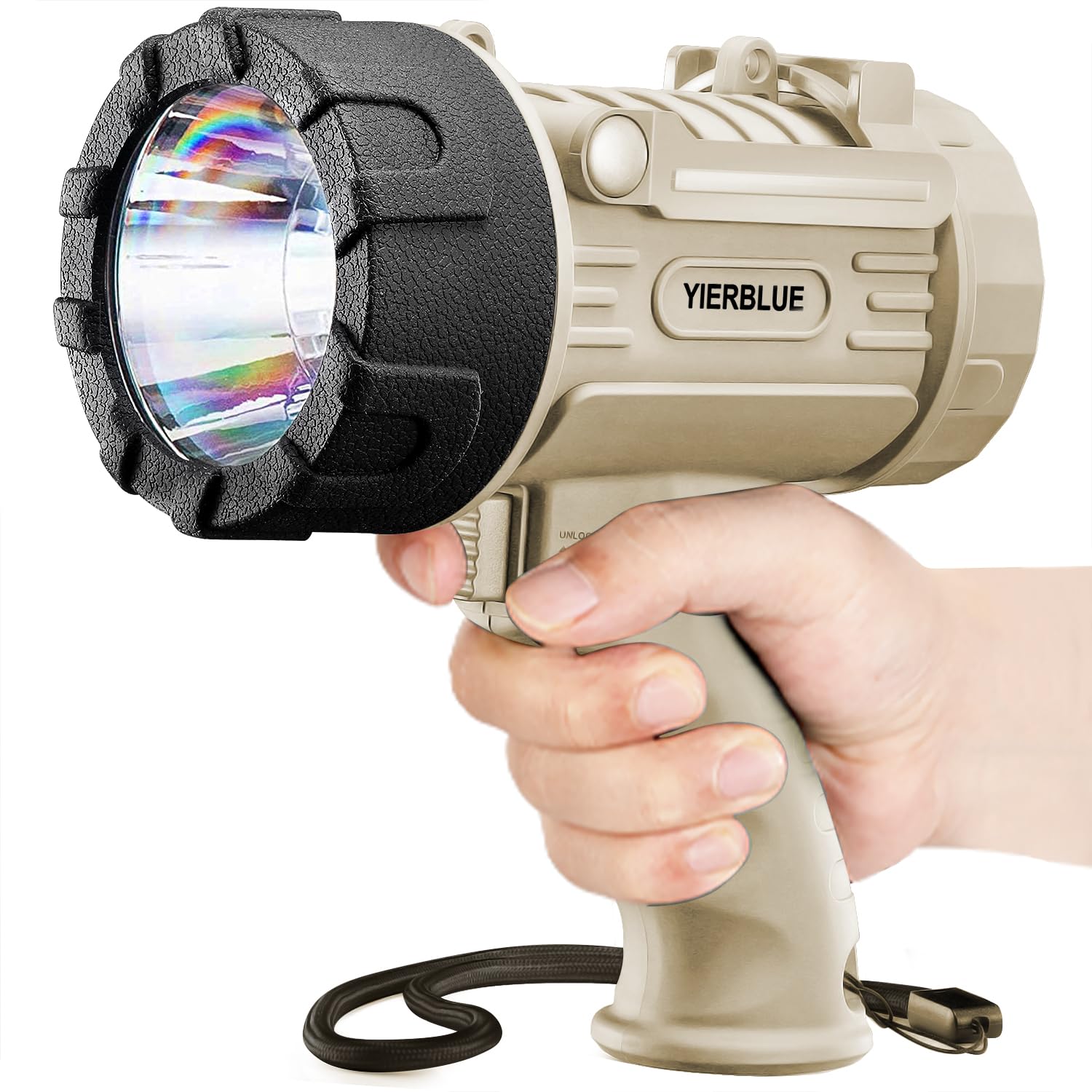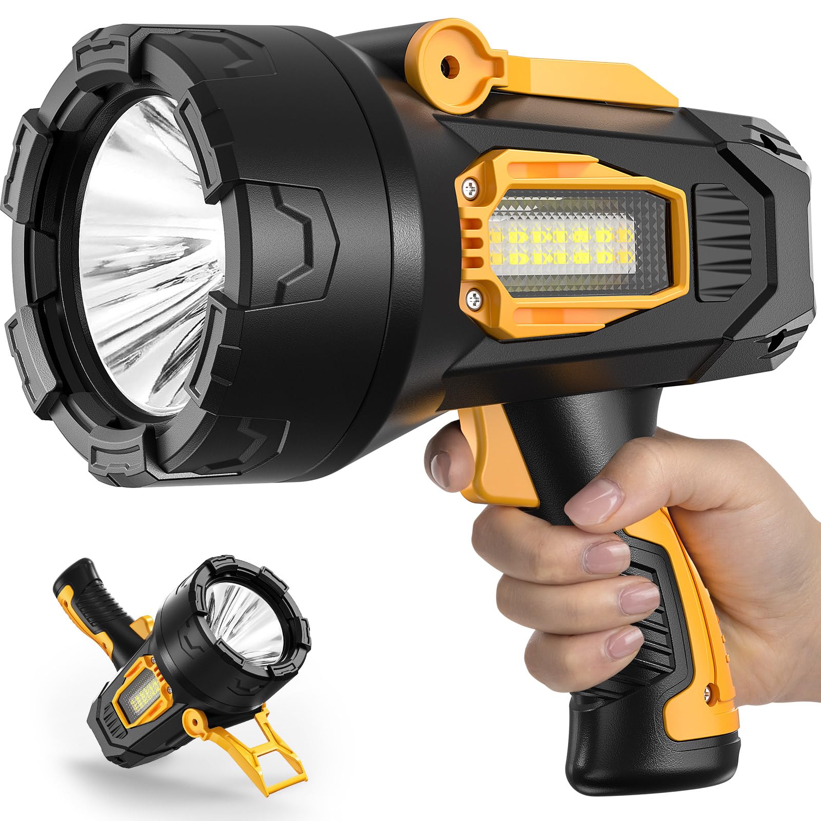 Spotlight, Rechargeable Led Spotlight Flashlight with 350° Rotate Head, 9 Modes Super Bright Spot Lights Outdoor Handheld, IPX6 Waterproof Solar Flashlight for Emergencies