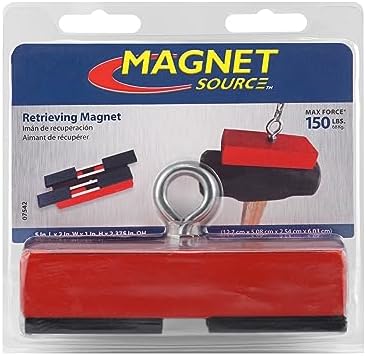 - CONVENIENT SIZE: This retrieving magnet is 5” x 2” x 1”. At 2 pounds, it’s easy to carry in your pocket, glove compartment or tool box. Magnetic shields are included to prevent the magnet from attracting items at inconvenient times. Thread Size - 1/4-20