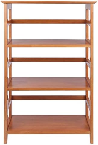 Showcase a favorite book collection, display photos and souvenirs, or organize a home office with Winsome Wood's four-tier bookshelf. Crafted of solid/composite wood, this simple style features deep shelves, open ladder-style sides, and narrow back support rails. The warm Honey finish brings out the wood's lovely grain and adds an inviting, casual glow to any room. The bookshelf also matches Winsome Wood's computer desk, writing desk, corner table, printer stand, and file cabinet. It measures 26 inches wide by 12 inches deep by 42 inches high. Assembly is required.