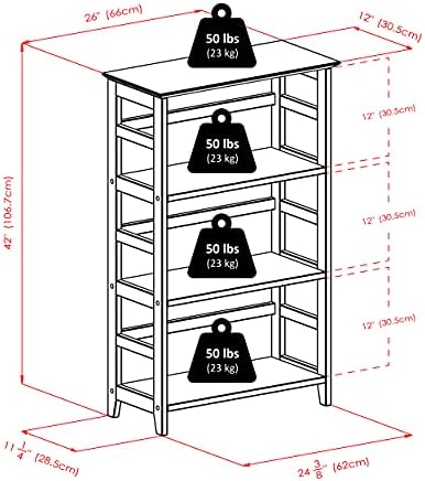 - Assembly required; measures 26-inch wide by 12-inch deep by 42-inch high