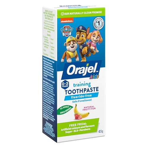 Orajel Kids Training Toothpaste helps gently and effectively clean little kid’s teeth and gums while brushing. Best of all, it's fluoride-free, nonabrasive, and safe if swallowed when used as directed. With 100% naturally sourced ingredients and a great natural fruity fun flavor, parents trust Orajel Kids Paw Patrol Fluoride-Free Toothpaste to help their children establish healthy oral care habits. From first tooth to full smile, Orajel has you covered. Proud to be the #1 Pediatrician Recommended Fluoride-Free Toothpaste*. *among those who recommend a brand.