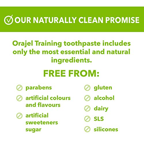 - GENTLY & EFFECTIVELY CLEANS TEETH & GUMS: Orajel training toothpaste helps remove food and plaque with brushing for cleaner teeth