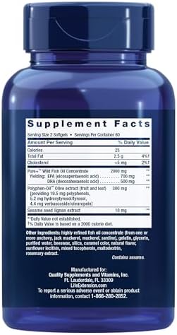 Life Extension Super Omega-3 EPA/DHA with Sesame Lignans & Olive Extract, 120 Count