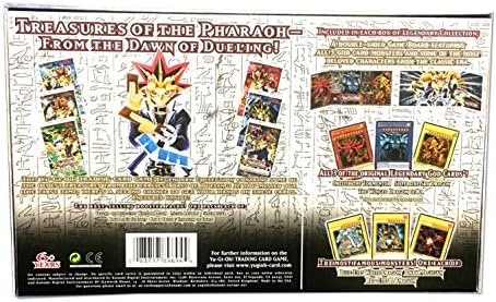 La colección legendaria del juego de cartas coleccionables Yugioh caja edición contiene algunos de los tesoros más antiguos desde los primeros días de duelos. Si se te pasó la primera vez, aquí es una segunda oportunidad para poner tus manos en estas cartas. Esta caja incluye un paquete cada uno de estos exitosos sobres de refuerzo: leyenda del Dragón Azul Ojos Blancos, Metal Raiders, Spell Ruler, Siervo del Faraón, Dark Crisis e Invasion de Caos. También incluido en esta caja: un tablero de juego doble cara que presenta todos los 3 monstruos de la carta Dios y algunos de los personajes más queridos de la era clásica, las 3 cartas de Dios legendarias originales: Obelisco el Tormentador, Slifer el Dragón del Cielo y el Dragón Alado de R (tenga en cuenta que estas cartas no están permitidas en torneos) y los monstruos más famosos: uno cada uno de Dragón Azul Ojos Blancos, Mago Oscuro y Dragón Rojo Ojos B.