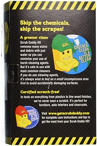 Heavy duty, scrub Daddy sponge, a 3 inch x 3 inch x 5 inch block with all the qualities of the original, tackles the worst messes both inside & outside the house, in any kitchen, shop or even for use on their boat.