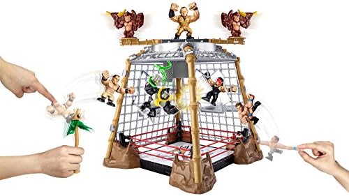 Stretch, launch and smash into outrageous WWE steel cage action with this Slam City playset! In the WWE animated series, Slam City, Superstars like Randy Orton have been banished to Slam City and they have to find real day jobs. Randy becomes a zoo keeper, and that’s where the mayhem begins. This over-the-top steel cage playset doubles as a gorilla cage, and guess what The gorilla just escaped! Help Randy Orton by using the palm tree to launch him towards the monkey targets atop the cage. Hit the target and release the platform and watch the gorilla tumble into the cage. Adding to the fun and chaos is the cage’s breakable walls and a bouncy ring surface. For maximum impact, the Randy Orton figure has rubberized arms stretch them to extend his knockout punch. Set comes with steel cage ring, palm tree launcher, Randy Orton Slam City figure, and a gorilla figure. Ages 6 and older. Features: • In the WWE animated series, Slam City, Superstar Randy Orton becomes a zoo keeper – and mayhem ensues! • This over-the-top steel cage playset doubles as a gorilla cage and the gorilla escaped! • Help Randy by using the palm tree launcher to shoot him towards the monkey targets atop of the cage • The cage has breakable walls and a bouncy ring surface-bounce your figures into mayheim! • For maximum impact, the Randy Orton figure has rubberized arms so you can stretch them to extend his knockout punch • Set comes with steel cage ring, palm tree launcher, Randy Orton Slam City figure, and a gorilla figure