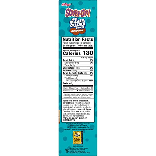 ¡SCOOBY-DOO! Bocadillos de galletas Graham horneados, hechos con granos integrales, refrigerios para el almuerzo de los niños, canela, caja de 11 oz (1 caja)