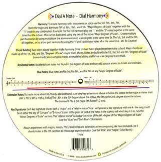 Create Harmony - Learn or Review Chord Construction - Learn or Review Basic Music Theory - no matter your Vocal Range, Instrument Played, Skill Level, Genre' or Musical Style - "Dial A Note Dial Harmony" consists of two circles - 8 inches across (UV Plastic Coated 14 pt. card stock in full color) with a grommet in the middle so that the circles spin around ... the top circle has an "Index Window" that will show you, in all 12 keys: How to create harmony (3rd, 5th, 6th, 7th, etc...) - and which "degrees of scale" you use to create them The Nashville Number System How to create your own chords with extensions (9th's, 11th's, 13th's ...etc) The Solfeggio names (the do, re, mi's') of all the notes the Order of Flats and Sharps in each Key Signature How to read the notes in both the bass and treble clefs The Diatonic Scale Degrees (tonic, supertonic, mediant, etc ...) The Modes (Ionian, Dorian, Lydian, etc...) where to start - where to end and which notes to play in all 7 Mode Scales in all 12 keys How many sharps or flats are in each key signature The "Circle Of Fifths" How to modulate and transpose from any key to any other key you choose The Major and Minor Degrees of Scale The Consonant Chords of the Major and Minor scale degrees (the "Natural Chord Qualities") Every note in Western Music at your fingertips more ... again - IN ALL TWELVE KEYS - No music reading is necessary to use "Dial A Note Dial Harmony" - Learn it all at once - or - learn it a little at a time ... whenever you're ready it's all here ... Welcome to the ultimate resource to learn or review all aspects of Creating Harmony, Chord Construction, Music Theory - no matter your vocal range, instrument played, skill level or musical style. ... what "Dr.Ducks Dial A Note - Dial Harmony" covers can impact the rest of your musical life ... Enjoy ... Home Studio Office Library Classroom Garage Stadium >>> Review: “Great tool for anyone to have at their side when playing, composing, etc. Lots of good information at the turn of the wheel. I’ve used a “Circle of 5th”. Still do. But, this wheel truly compliments with lots more data at your fingertips. Great buy!! Can’t Go Wrong With This Wheel.” – MovieTimeCritic >>> Review: “A book full of musical information in one dial- rguy1956” >>> Review: “This is very useful tool to help expand your musical chops. This wheel is portable and contains more useful information than most wheel of fifths posters. There is more that one good YouTubeVideo to help get oriented to its use.” – Amazon Customer 1-14-21 >>> Review: “I present this info to most people by saying that there’s roughly the first year & a half of your music theory classes if you were a college music major”- Rick Rosen (Choir Director/Founder Cordus Mundi Choral Group) >>> Review: “It’s a massive dial of knowledge I received it in the mail, and it is honestly far bigger than I thought! It’s a nice cheat when you don’t want to think about the basic laws of music theory. Very handy!” – Geoffrey
