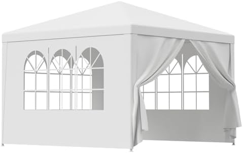 Toldo de gazebo Smartxchoices de 10 pies x 10 pies para exteriores, blanco e impermeable con paredes laterales y ventanas, carpa resistente para fiestas, bodas, eventos, barbacoa en la playa (blanca)...