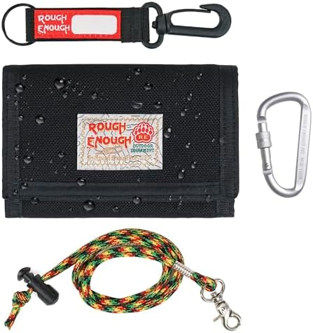 Rough Enough Kids Wallet for Teen Boys with Neck Lanyard Keychain Zipper Coin Purse Card Holder Black Cordura
