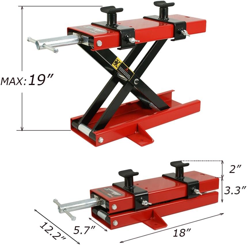 Smartxchoices Motorcycle Jack Lift Stand 1100 lbs Scissor Lift Jack ATV Motorcycle Dirt Bike Scooter Crank Stand Street Bikes Cruisers Touring Motorcycles (Red/Black)