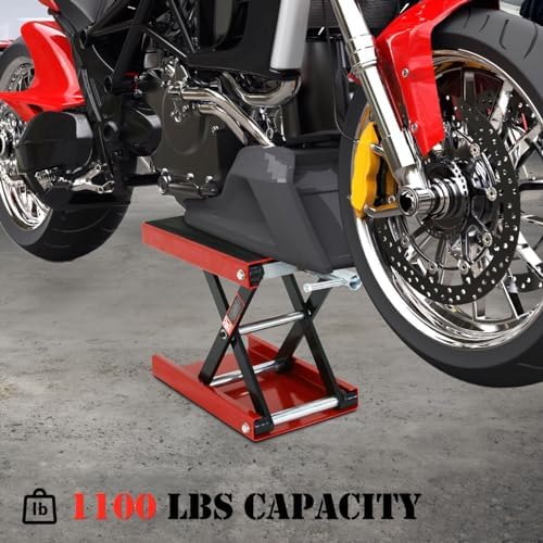 Smartxchoices Motorcycle Lift 1100 LB Capacity Wide Deck Motorcycle Center Scissor Lift Jack Hoist Stand for Street Bikes Cruisers Touring Motorcycles ATVs