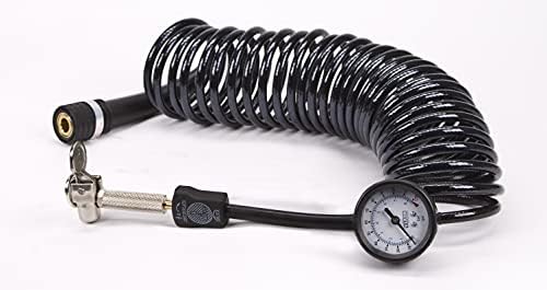 - 5-In-1 inflator/deflator air hose with inline 100 PSI gauge