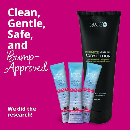 - Organic Energizing Glow Lotion: This organic citrus-scented moisturizer is made for pregnancy-sensitive skin. Pregnancy safe, gentle and uplifting, it adds a small but meaningful spark to her routine when the days feel long and her body’s working overtime. Pregnancy-safe ingredients soothe dry, irritated skin while mood-boosting orange, lemon and grapefruit essential oils give you a much-needed energy boost.