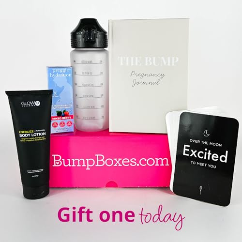 Bump Boxes 1st Trimester Pregnancy Gifts for Expecting Moms with Water Bottle, Journal, Lotion and Milestone Cards, Gift for Mother to Be