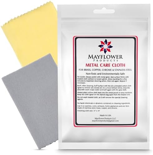 Mayflower Polishing Cloth for Stainless Steel Copper Brass Chrome Made in USA Non Toxic 2 Cotton Cleaning Set 11 x 14 in ea.User-Friendly Cleaner for Kitchen Watch Musical Instruments Coins Antiques