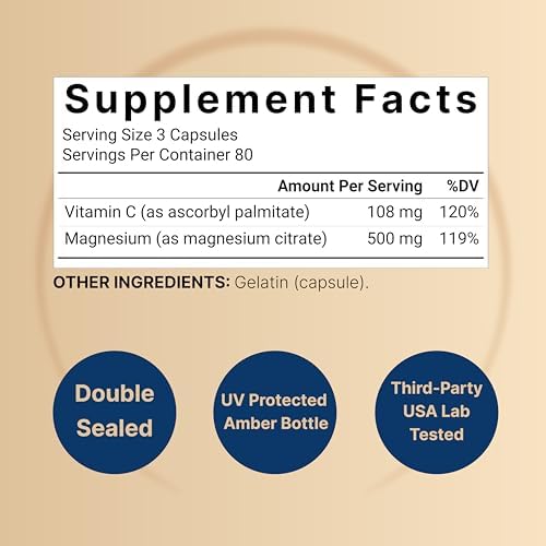 - Cápsulas de citrato de magnesio de alta potencia y forma elemental completa. Proporciona nutrientes esenciales de minerales traza. Forma citrato biodisponible óptima que es fácil para el estómago y se absorbe eficientemente en el cuerpo.
