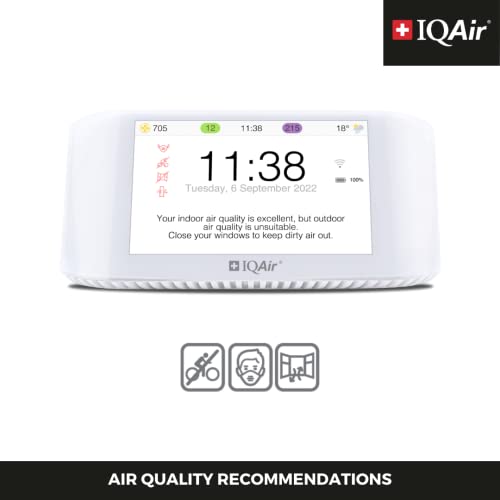 IQAir Air Quality Monitor Indoor, Swiss Design, Professional Grade, Detects PM2.5, CO2, AQI, Temperature, Humidity, Indoor Air Quality Real-Time Air Quality & Forecasting, Historic Data