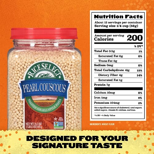 RiceSelect Pearl Couscous, Israeli-Style Wheat Couscous Pasta, Non-GMO, 24.5-Ounce Jar, (Pack of 1)