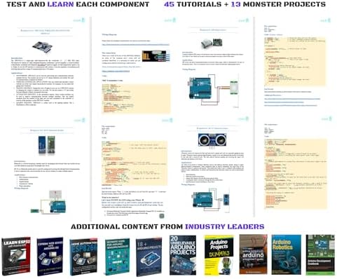 - Explore la programación de electrónica con todos los sensores y módulos más comunes en Arduino como Lector de Tarjetas RFID, Sensor Ultrasónico, Reloj de Tiempo Real, Interruptor de Impacto, Acelerómetro de 3 Ejes, LCD, Relé, Servo y Motor Paso a Paso - adecuado para usuarios principiantes o avanzados