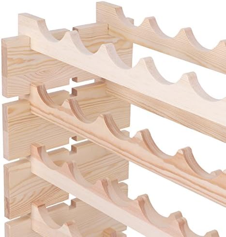 - 🍷【Modular Design - Stackable and Functional】Versatile modular stacking style, wave shaped shelves, arc design prevent wine bottles scattered around, inter lock each connection point. Unfinished wood gives option to stain, paint, varnish or leave as it is. In assembly mode, compared to the standard wine rack, metal rods and parts that don't often align with a non rigid structure, this rack snaps together with precision and speed.