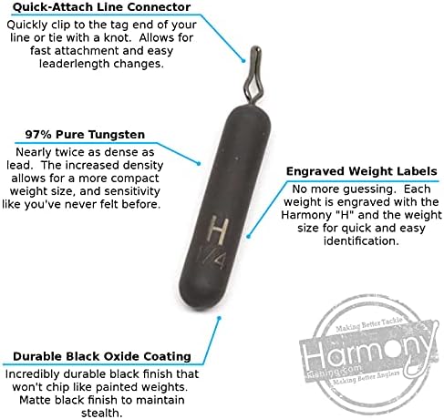 - Available in multiple weight sizes and pack quantities. Manufactured and warrantied by Harmony Fishing Company.