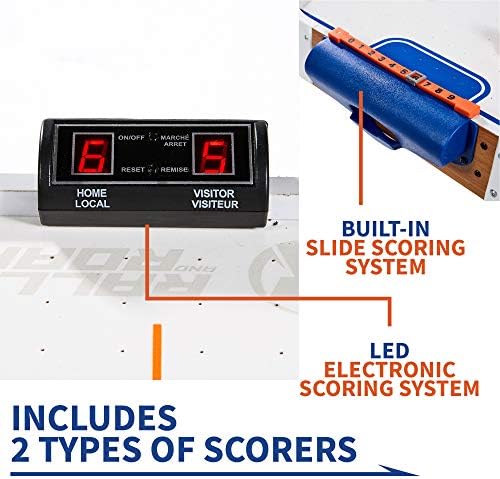 - TODO LO QUE NECESITAS: La mesa neumática eléctrica Rally and Roar viene con todas las piezas que necesitas para un juego desafiante de hockey de mesa. Con dos opciones de marcador, 2 mini discos y 2 mini pulsadores, tienes todos los accesorios que necesitas.