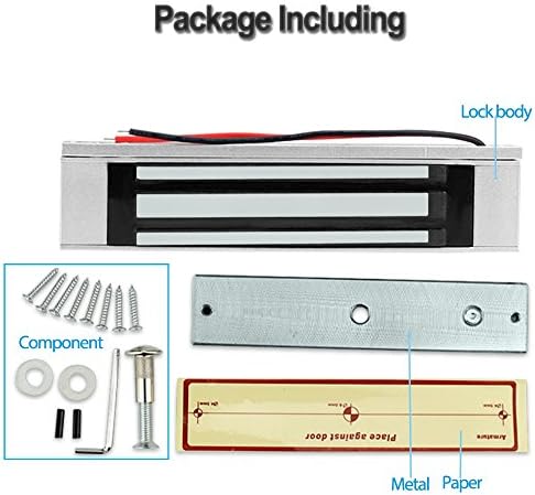 Features:1. NC mode - (locked while supplied with power), fail safe mode.2. Safety function: built-in voltage spike suppressor.3. Material: Stainless steel.4. Anti-residual magnesium designed.5. Holding force about 180KG/350Lbs.6. Suitable For: Wooden door, Glass door, Metal door, Fireproof door.Specifications:Model Name: L-180kgDimensions: 170x23x39mm / 130x33x9.3mmWorking Voltage: DC12VWorking Current: 380-500mAWorking temperature: -20 to 55 Celsius degreeHumidity: 0~90%Time of unlock: ≤1sOperating Mode: NC (locked while supplied with power), fail safe modeWaterproof, without LED working indicator light. Package Including:1 x Electric Magnetic Lock1 x Bag of installation kit