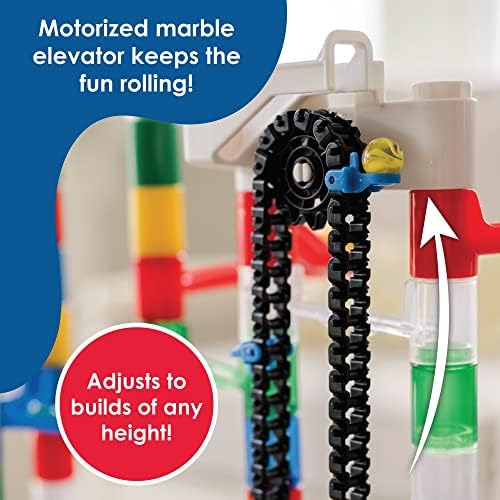 MindWare Marble Run 110 Piece Building Set with 82 Track Pieces, 15 Marbles and Motorized Elevator