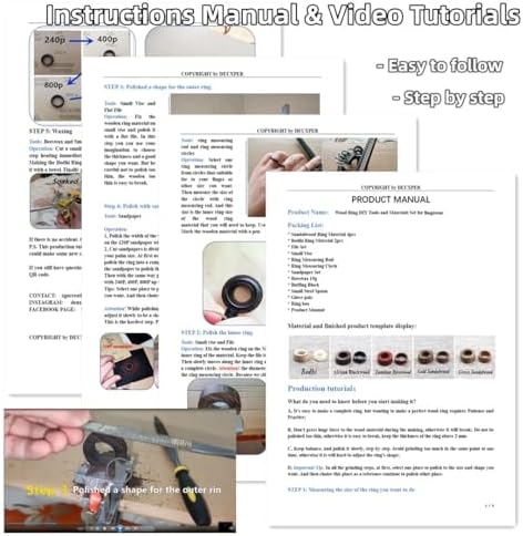 - COMPLETE KIT & EASY TO MAKE WITHOUT A MESS -This kit comes with everything you need to make Ring Artworks. 6 Wood File, Assorted Grit Sandpaper (120,240,400, 800, 2000..), Tutorial template and all crafting supplies necessary to finish ring