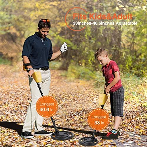 - ▲DISeño AJUSTABLE PARA TODAS LAS EDADES: el detector de metales de 33" a 40.6" de tallo ajustable es aplicable para niños y adultos. El diseño del reposamanos ahorra más esfuerzo, lo que te proporciona una sensación de comodidad.