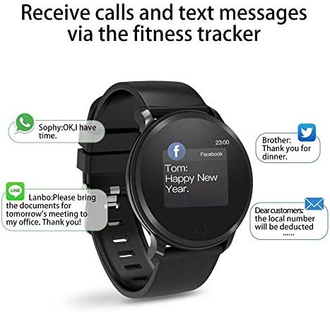 - 🌈【Recordatorio de llamadas y mensajes】Alerta de llamada telefónica, SMS/SNS, el Fitness Watch vibrará cuando recibas el mensaje para que no te pierdas ninguna información importante. Rechaza directamente las llamadas en el reloj, sin necesidad de sacar el teléfono del bolsillo. Después de vincular el teléfono móvil, la fecha y la hora se sincronizarán directamente.