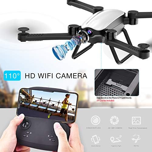 - Mantenimiento de Altura. Puedes soltar el palillo del acelerador y el dron mantendrá la altura actual. Despegue y aterrizaje con un solo botón, súper fácil de volar y fácil de tomar imágenes o videos de calidad con cámara HD en tiempo real por WIFI.