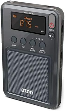 Eton - Radio Mini Compact AM/FM/Onda Corta, Antena AM Interna y Antena Telescópica FM/SW, Reloj y Alarma, Temporizador de Sueño, Funda de Cuero Personalizada Incluída, Compromiso con la Preparación