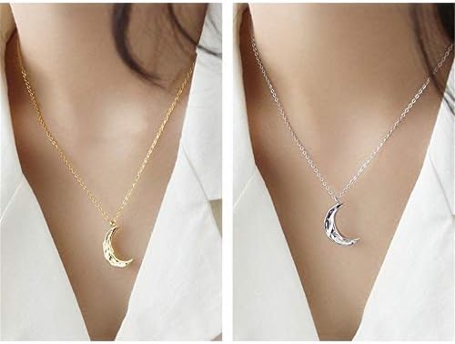Dtja Boho Moon Necklace for Women Girls Sterling Silver Simple Delicate Crescent Half Moon Phase Karma Choker Pendant Necklace Adjustable Chain Handmade Hammered Jewelry